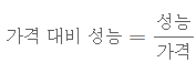 가격 대비 성능은 아래와 같은 수식으로 계산된다.